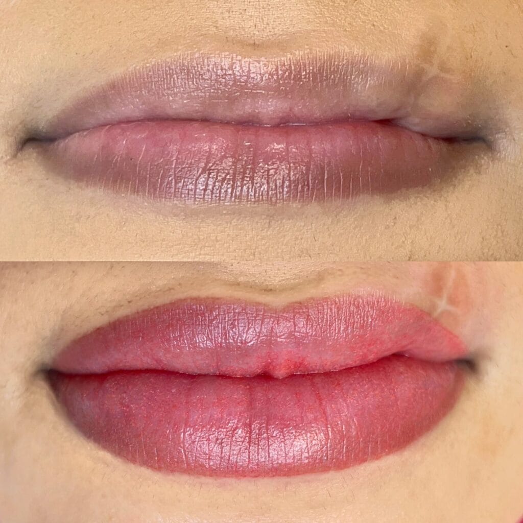 It’s common that clients travel from near and far to see us to have their lips reshaped and redefined due to many reasons including a dog bite or accident. We also work on cleft pallet reconstruction and lip reconstructive clients who need scar camouflage or lip blush combo. By assisting these people with our services, they’re able to feel more like their authentic selves and regain that confidence. There are so many different scars that can be effectively concealed by tattoo!