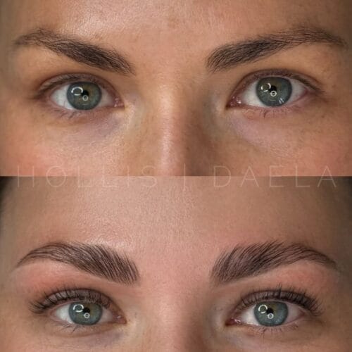 - Tattooing: Whether microblading or using a machine, the process involves creating hair-like strokes that mimic your natural brow hairs.