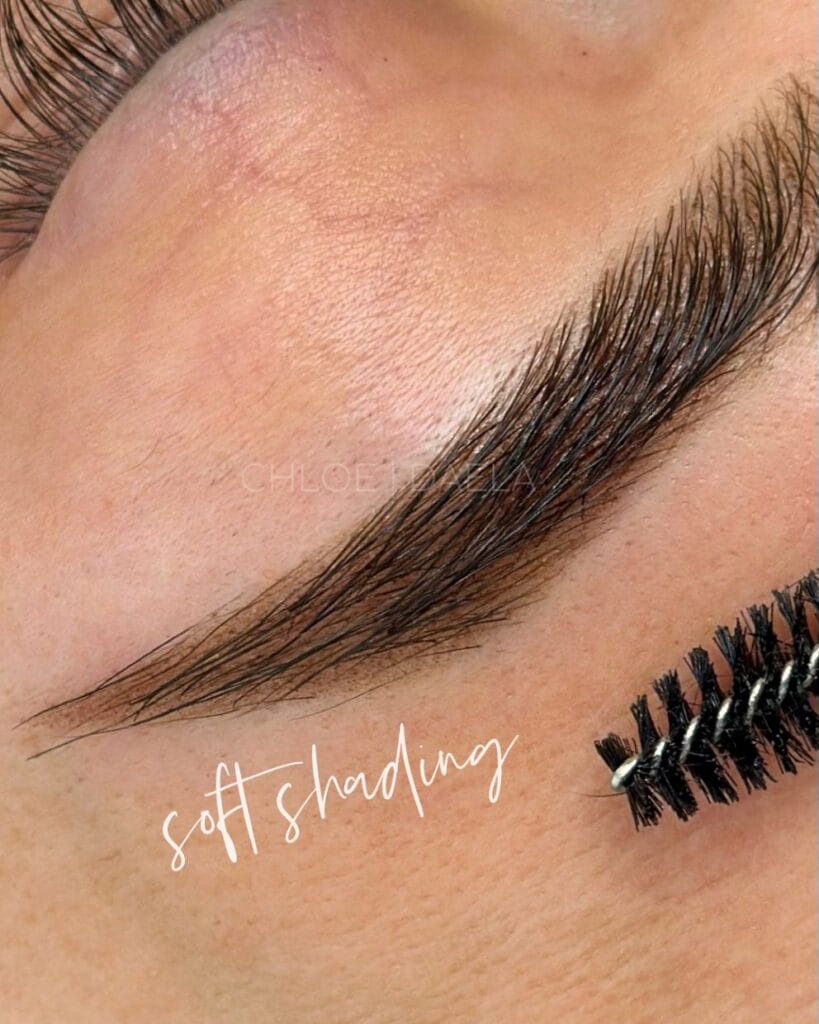 Nano brows use a machine to create ultra-fine hair strokes. While nano brows alone are stunning, adding shading gives the look more structure and works better for certain skin types.
