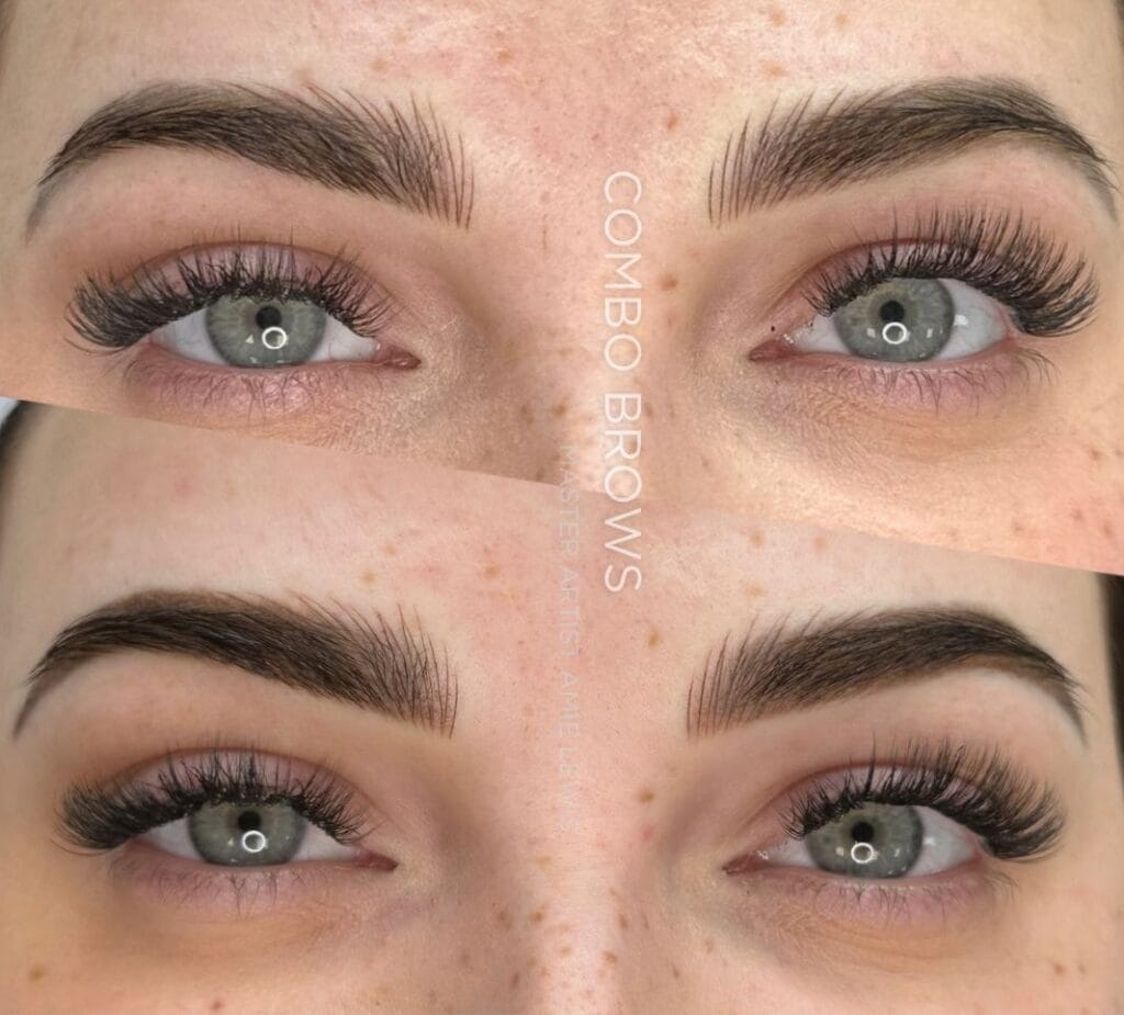 Combo brows—also known as hybrid brows or shaded brows with hair strokes—combine the best elements of microblading, nano brows, and ombre powder brows.