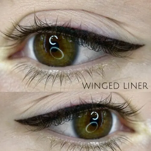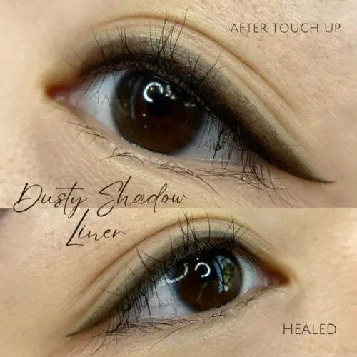 - Plus you can build on it. You can add winged liner, build up to classic liner, or add dusty shadow at your touch-up appointment. (See pricing menu for add-on pricing)