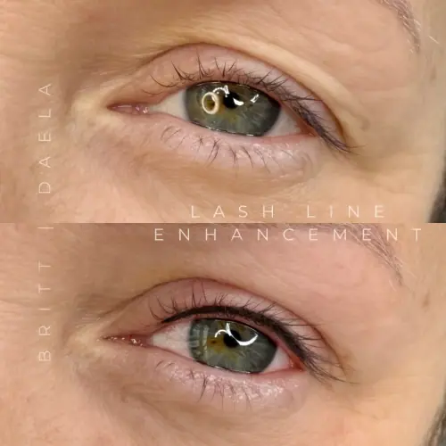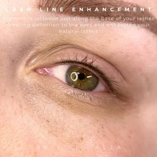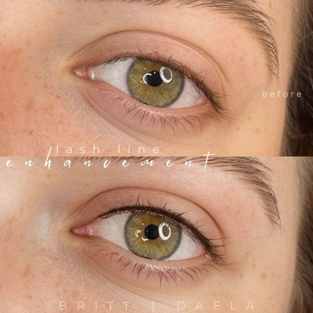 - Unlike traditional eyeliner tattoos, which sit on the eyelid, lash line enhancement stays right in the lash zone, making it the ultimate in soft and natural-looking liner tattoos.