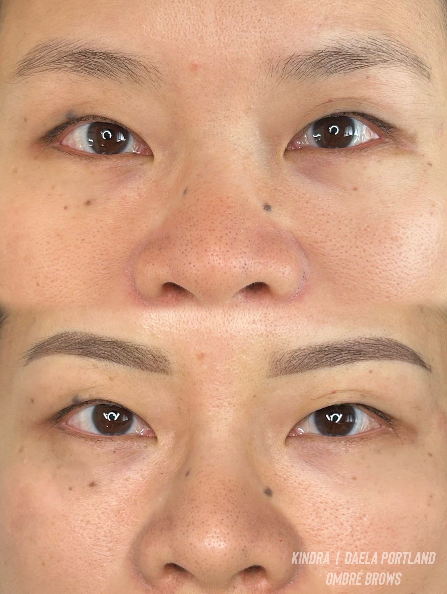 The skilled artists at DAELA Portland use a small, handheld machine to create these amazing brows. Ombre powder brows are great for those who haven’t had any previous work done as well as people who have had previous brow tattoos and aren’t candidates for microblading again.