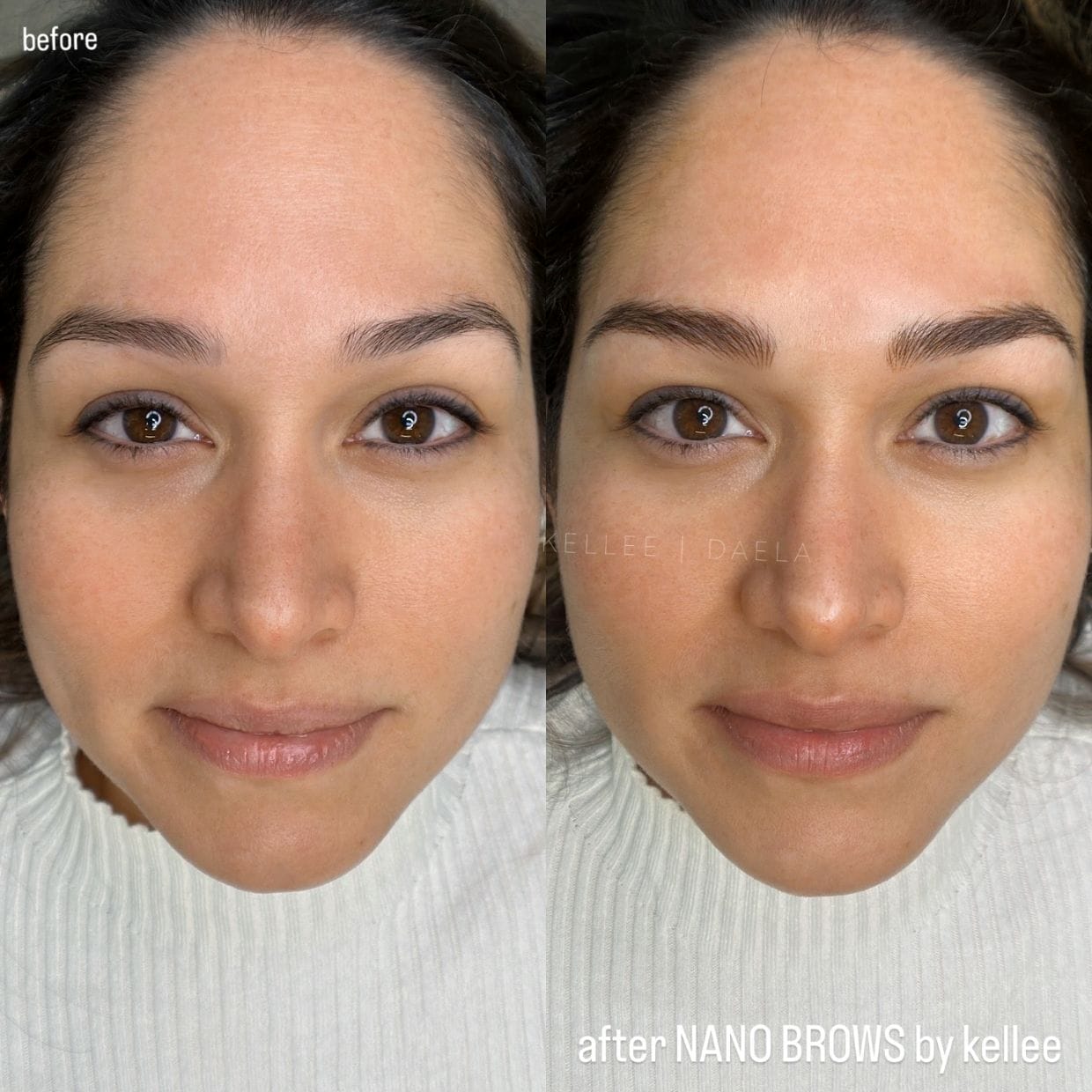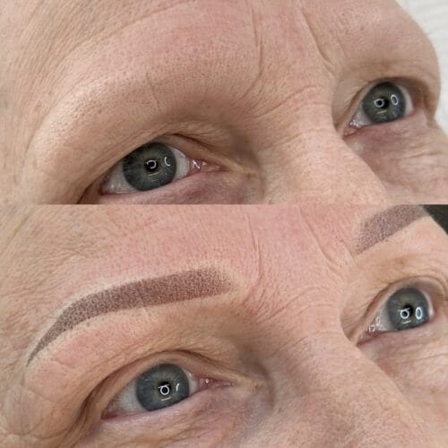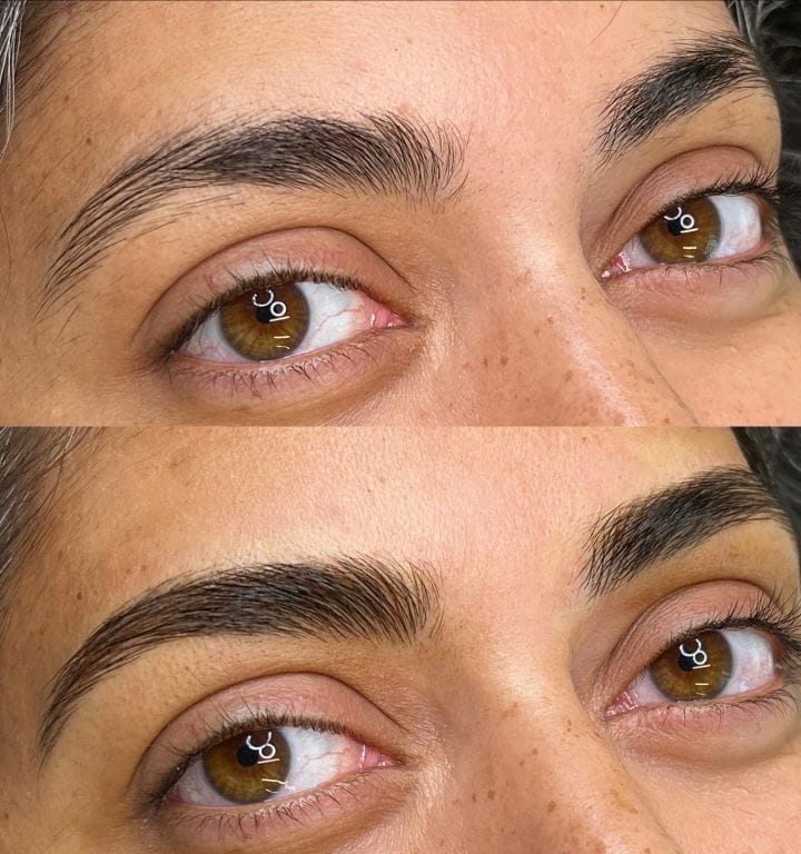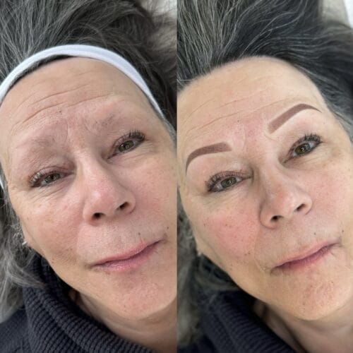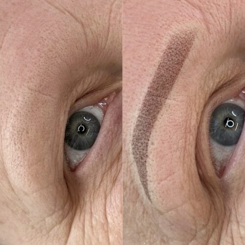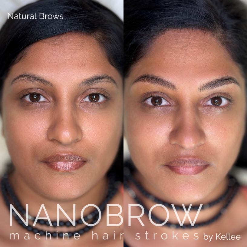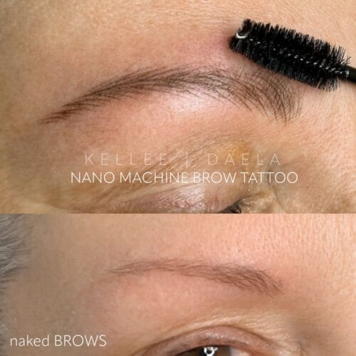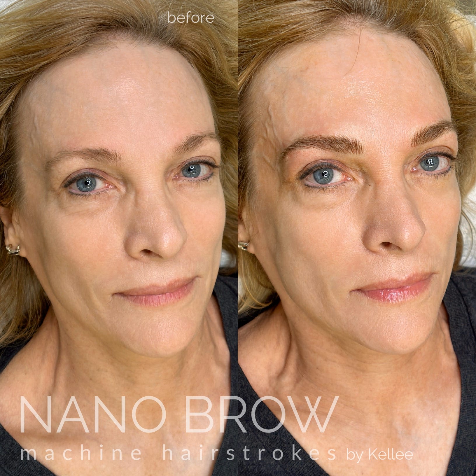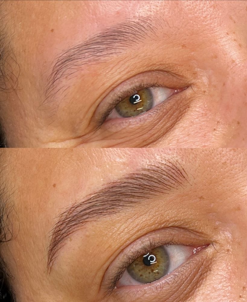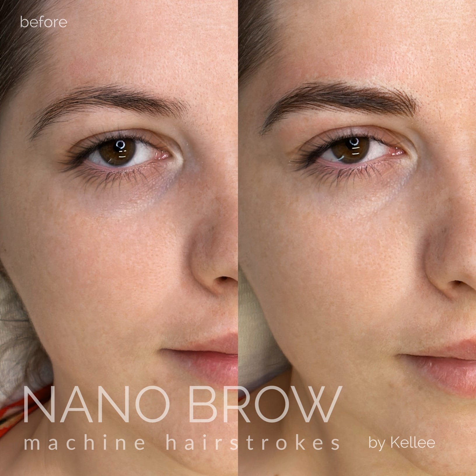 This cosmetic tattoo brow procedure creates beautiful brows that combine the soft powder look of Ombre Brows with hairstrokes, achieved using either traditional microblading or machine nano brows.