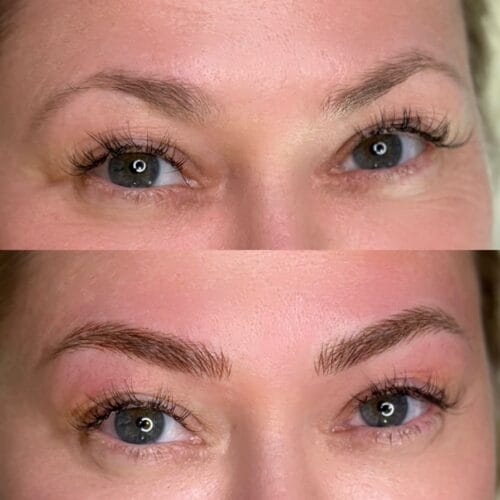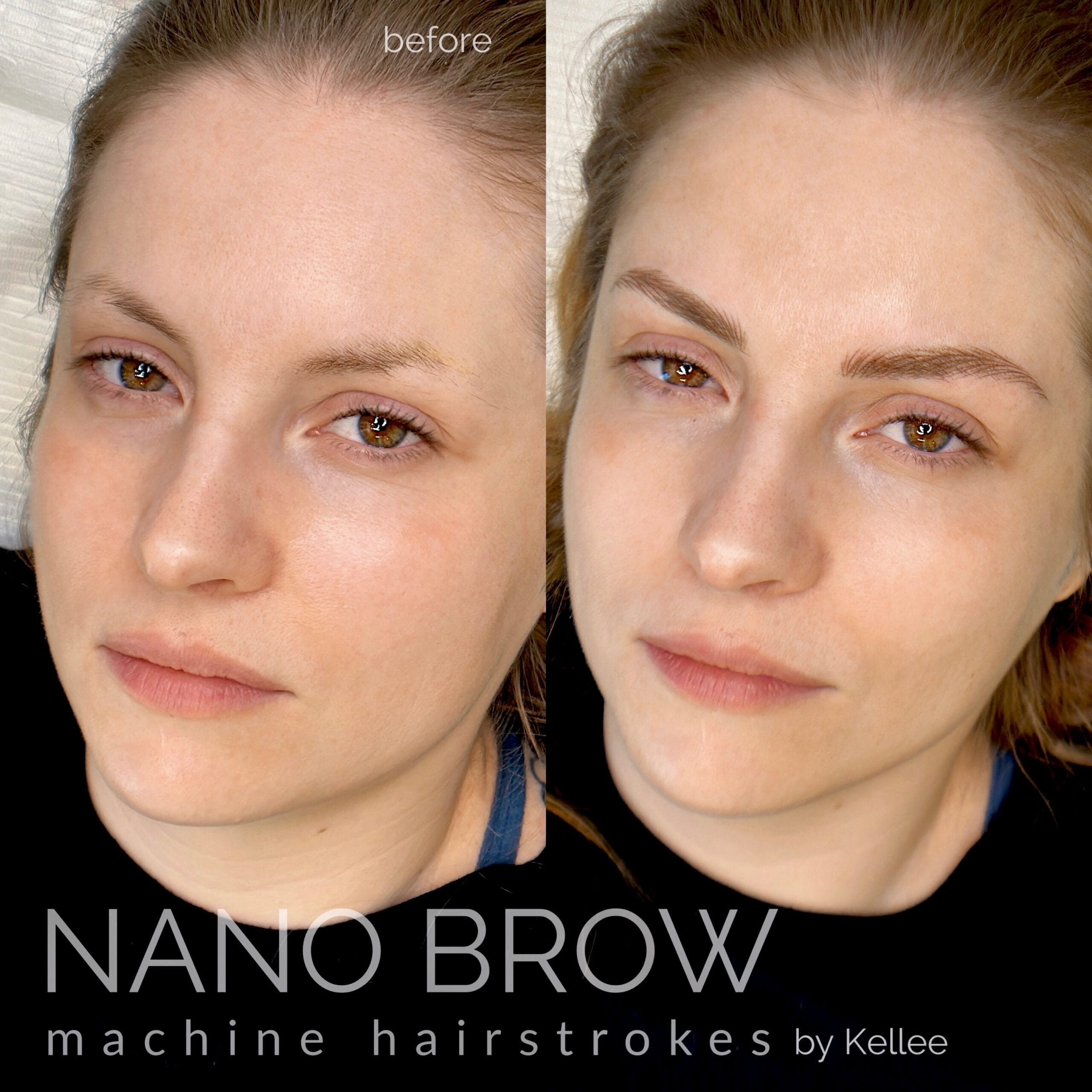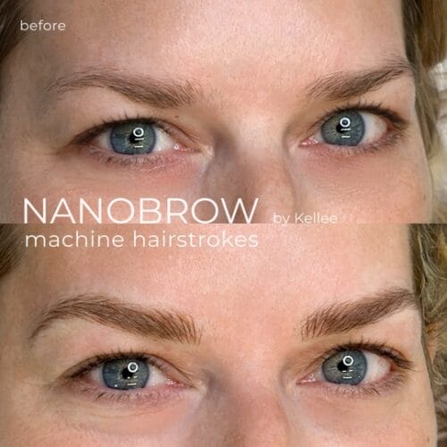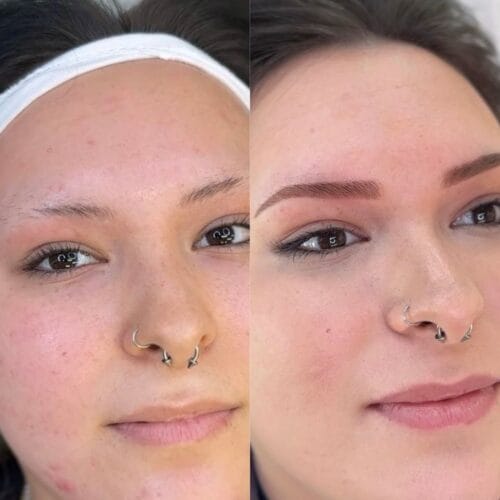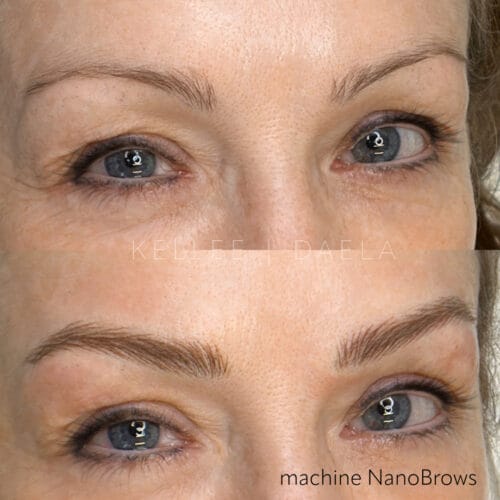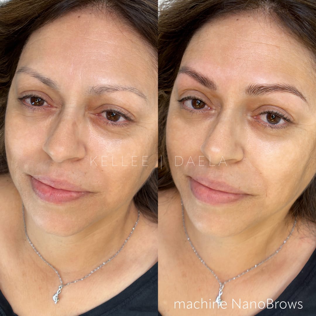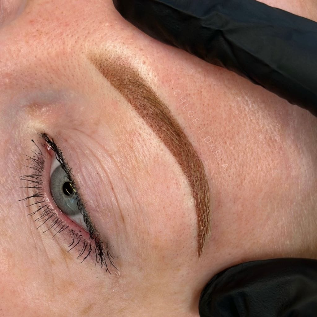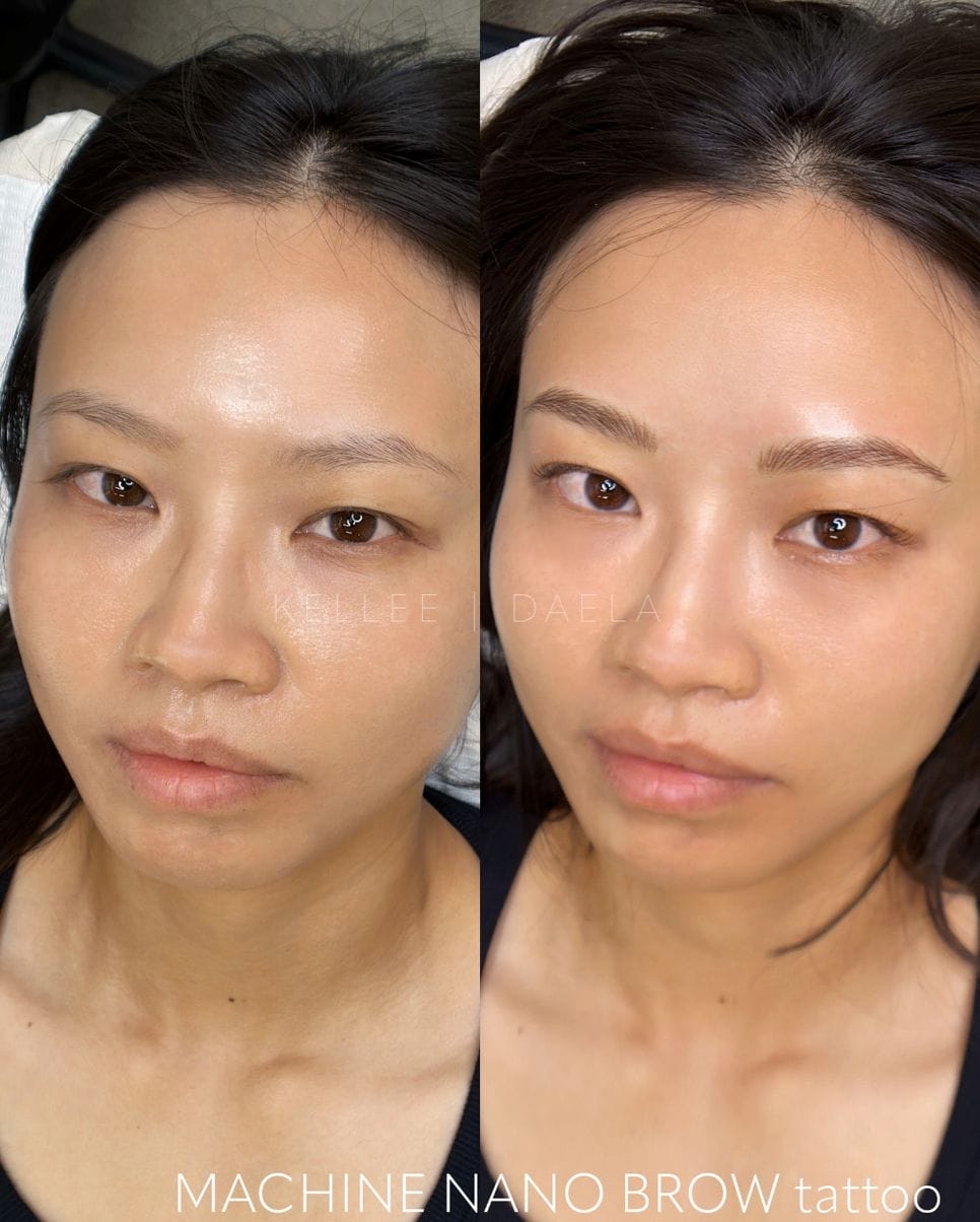 This cosmetic tattoo brow procedure creates beautiful brows that combine the soft powder look of Ombre Brows with hairstrokes, achieved using either traditional microblading or machine nano brows.