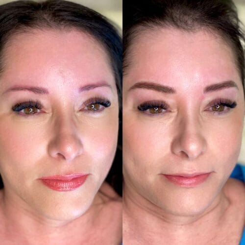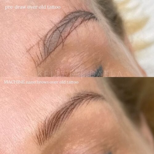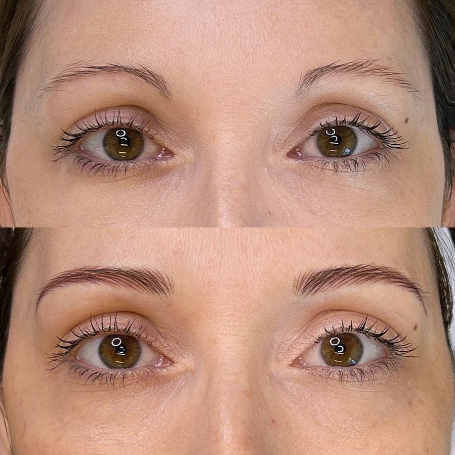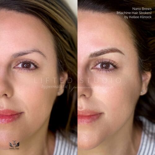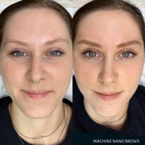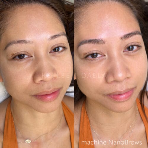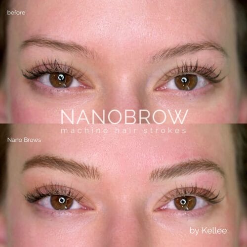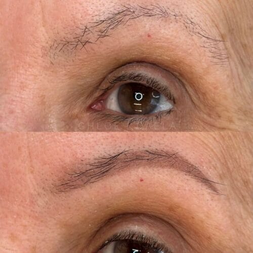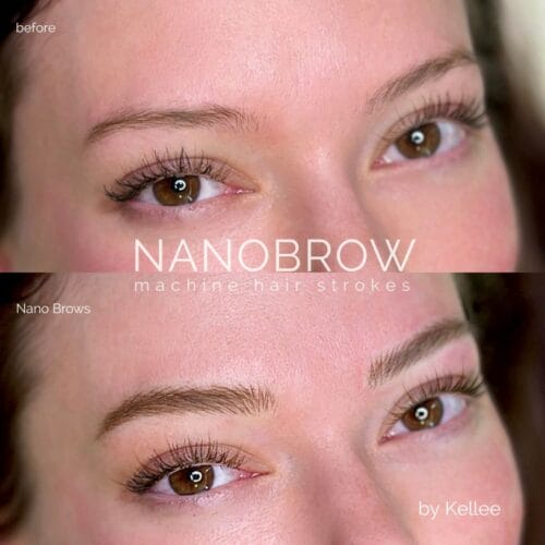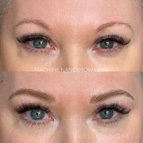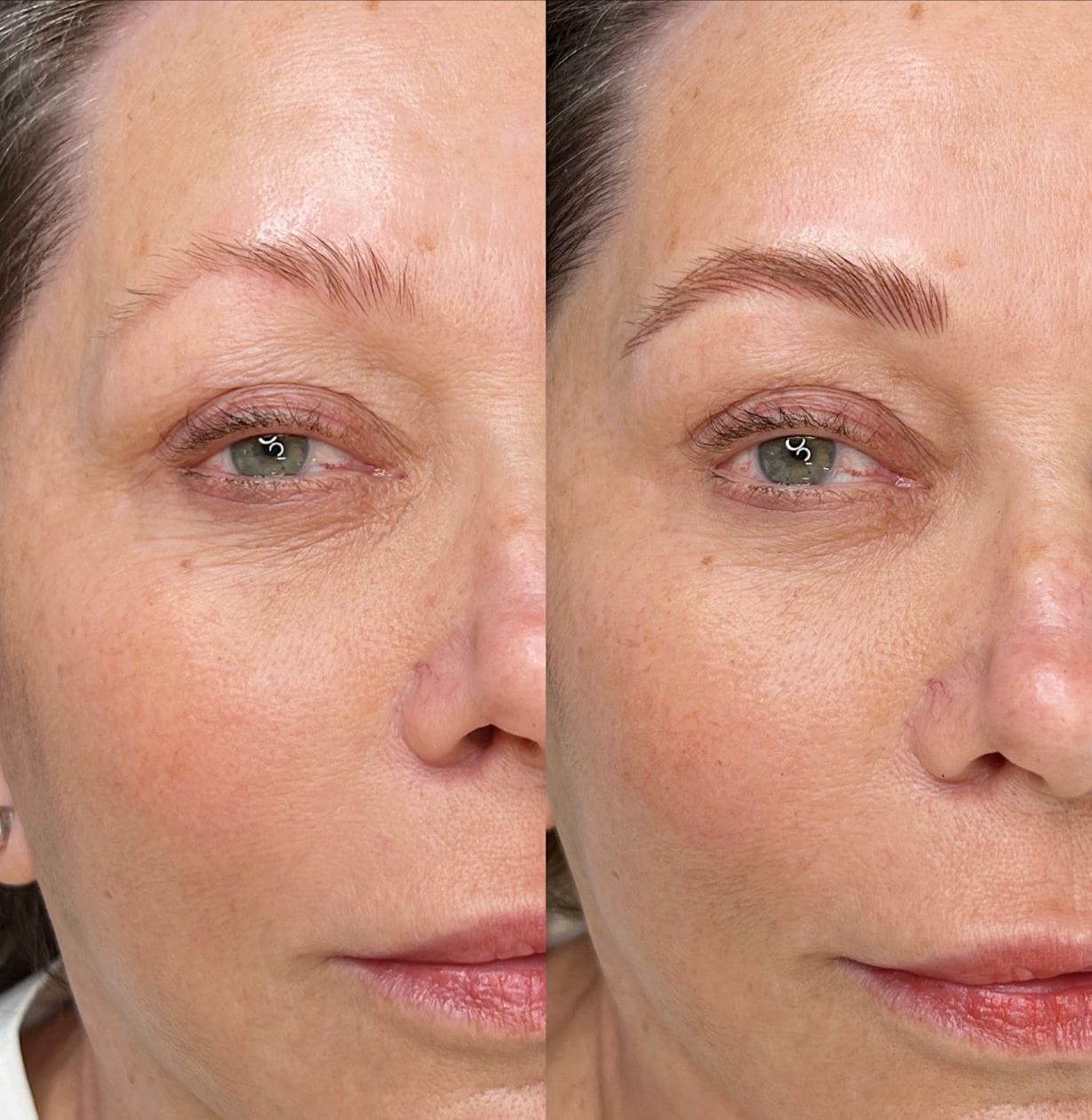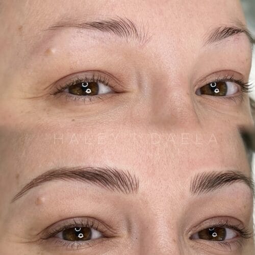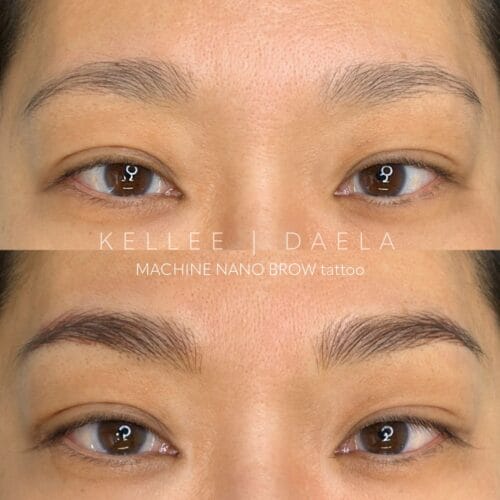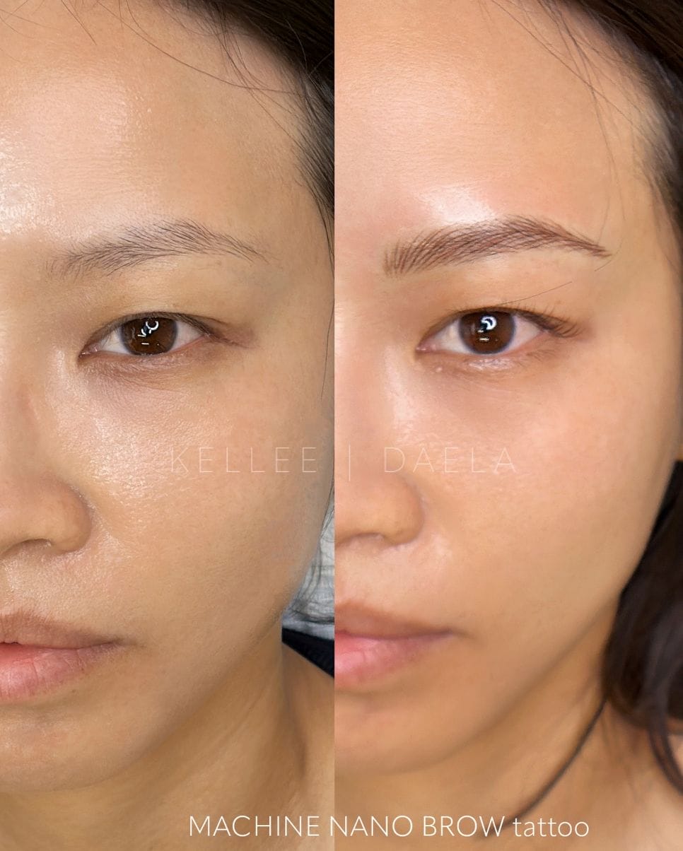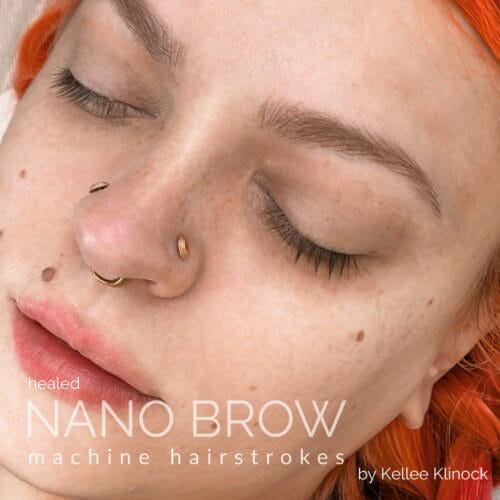 This cosmetic tattoo brow procedure creates beautiful brows that combine the soft powder look of Ombre Brows with hairstrokes, achieved using either traditional microblading or machine nano brows.