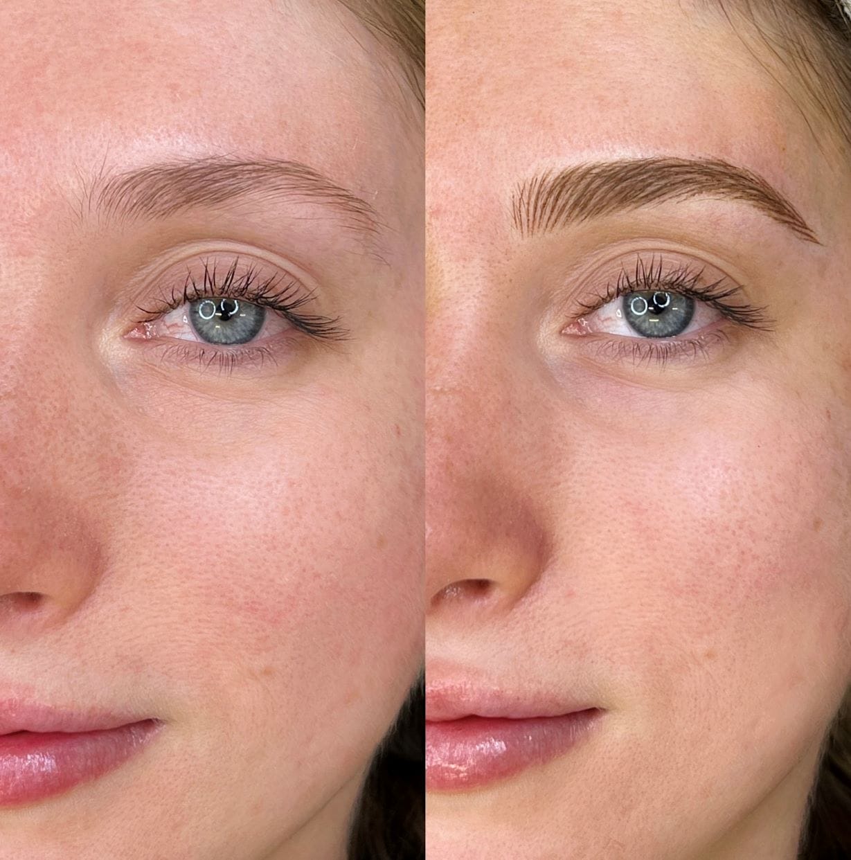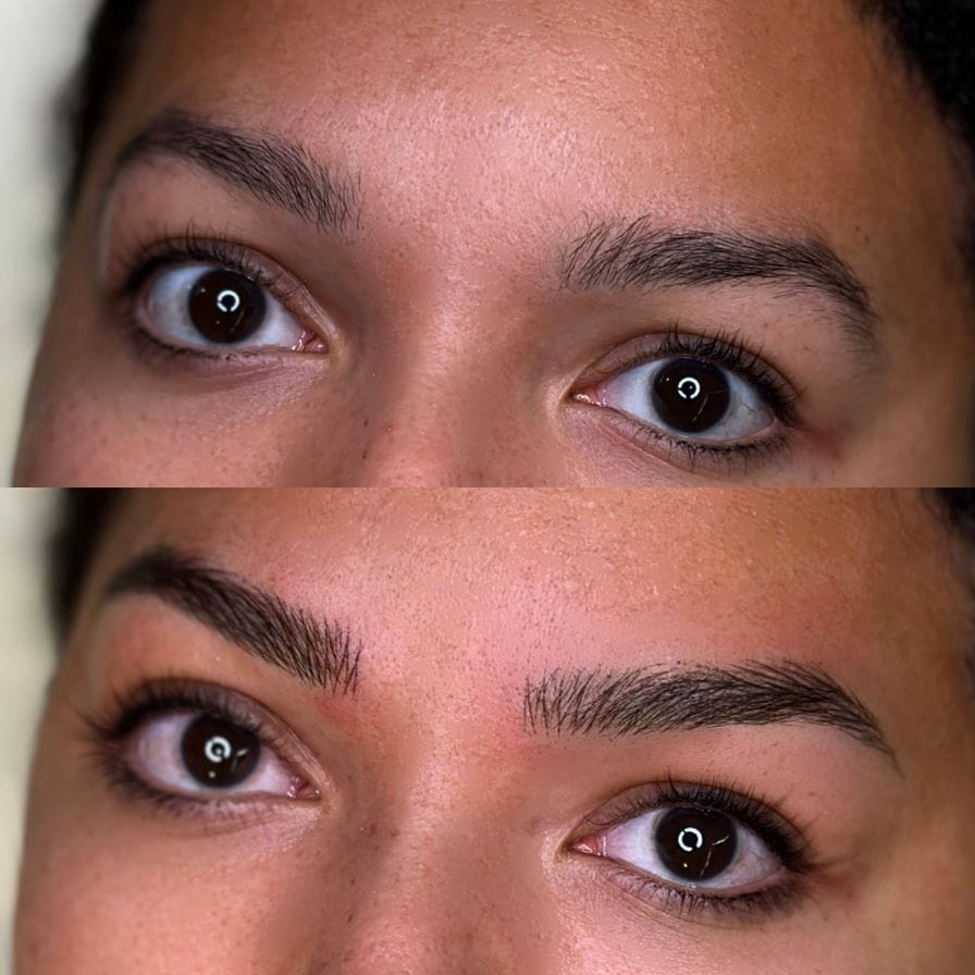 - They’re great for anyone! This service is an excellent option for those who want to add definition to their already existing eyebrows or those who have minimal to no brows at all. It is also a great option for those with previous tattoo or oily skin.