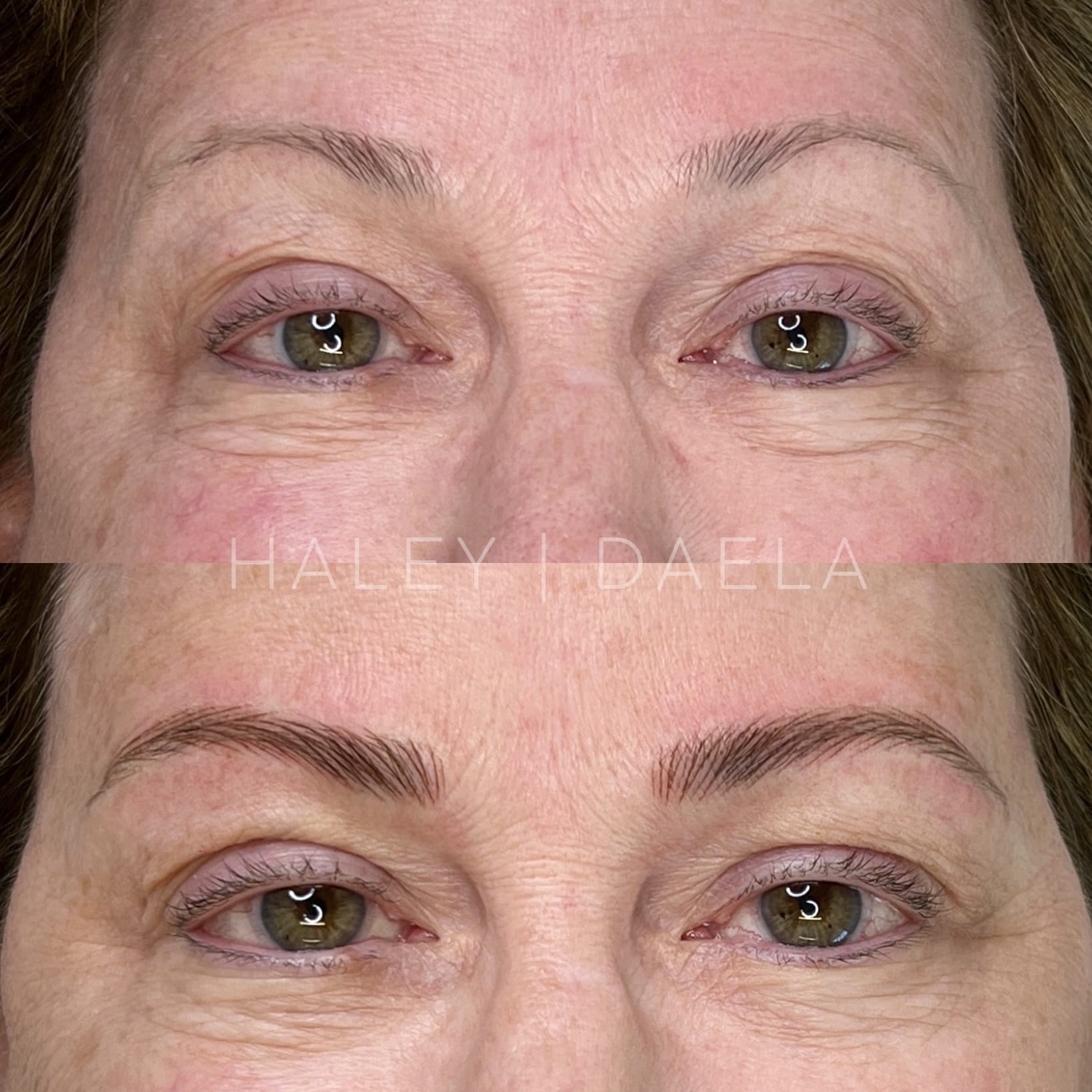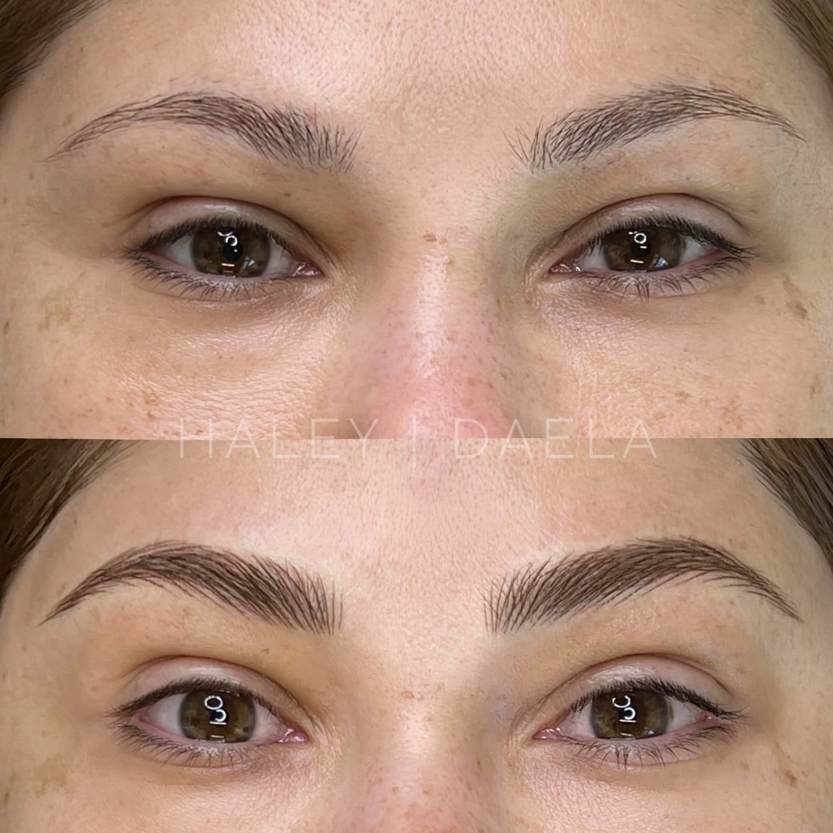 DAELA Scottsdale offers combo brows- a beautiful combination of powder brows and hairstrokes.