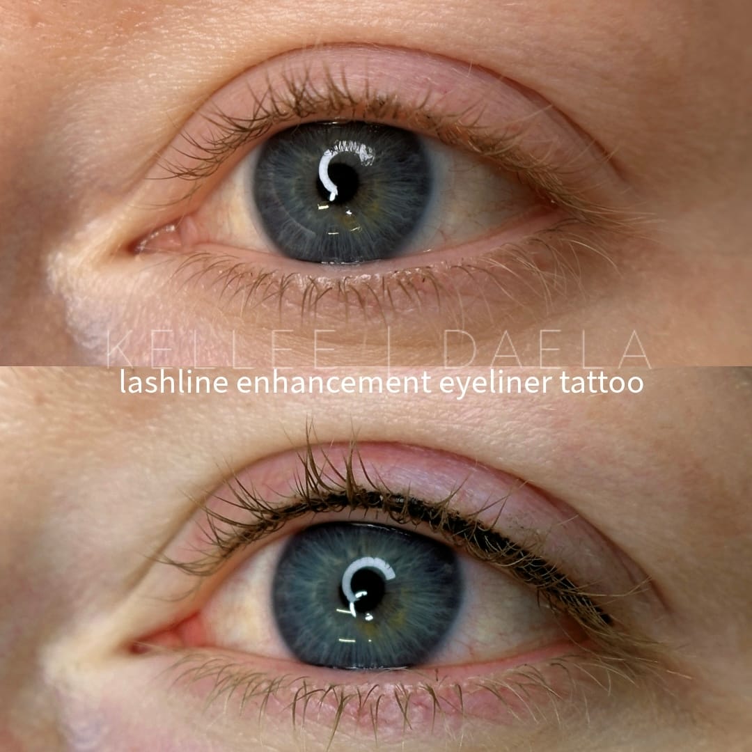 - Unlike traditional eyeliner tattooing, which typically creates a more defined line, lash line enhancement focuses on adding subtle pigment between the lashes to enhance their thickness and volume.