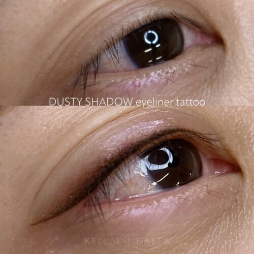 - Dusty shadow eyeliner tattoo is a cosmetic tattooing technique that combines elements of traditional eyeliner tattooing with the soft, blended effect of eyeshadow.