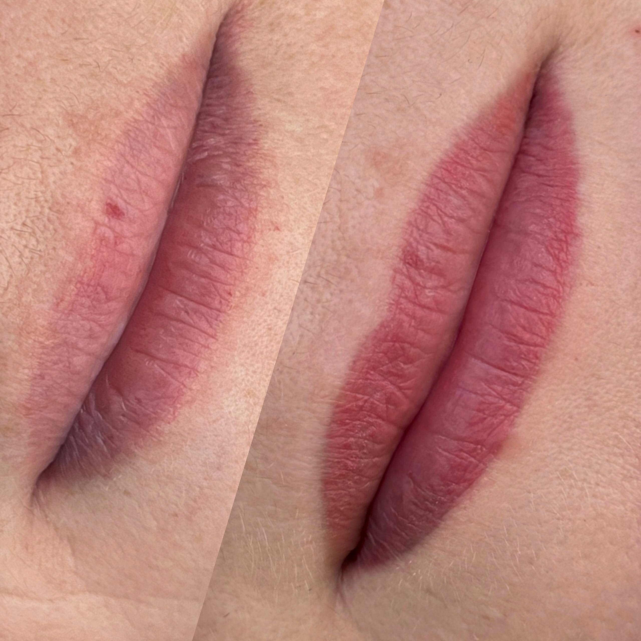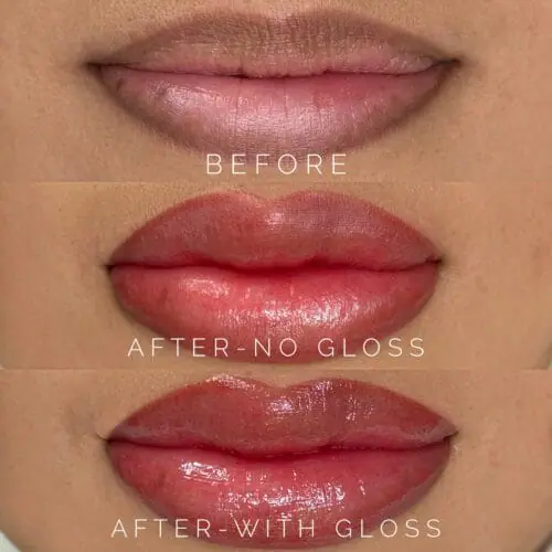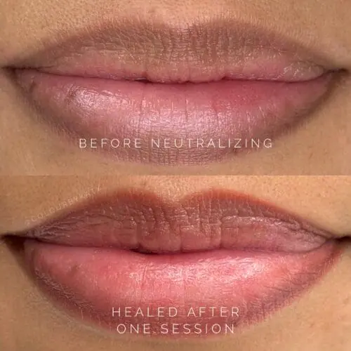 There is no physical downtime. You will experience 1-2 days of a bold and bright lip, followed by 2 days of chapped lips. Outward healing is done after this stage, but lips continue to change and adjust in color for the next month. At one month, all color is balanced, and the lips are fully healed. You can view the complete before and after care instructions on this website!