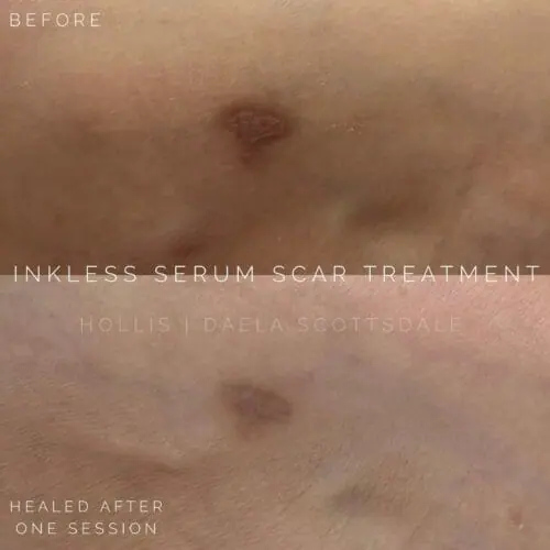 - Scars can be treated with the inkless technique first and then followed with ink.