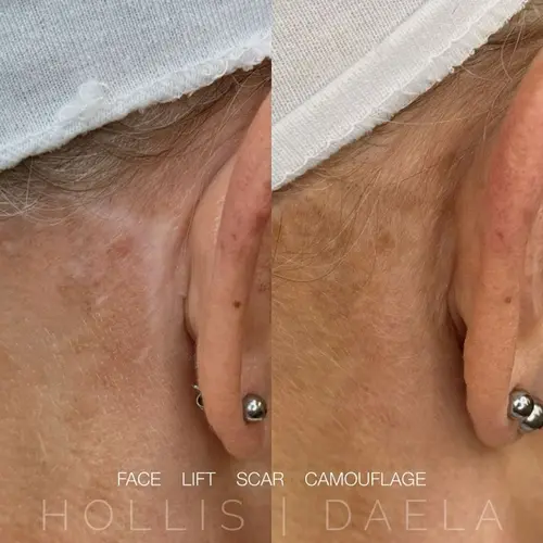 - Typically it will take two sessions to perfect the skin color scar camouflage.