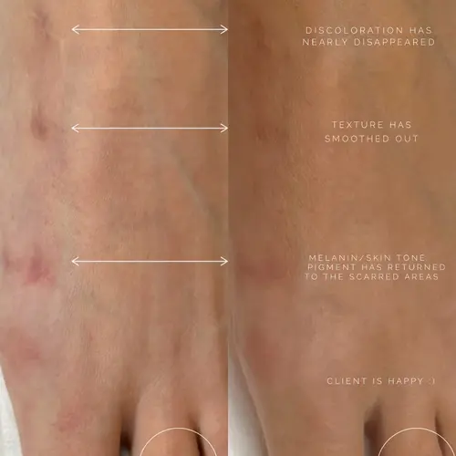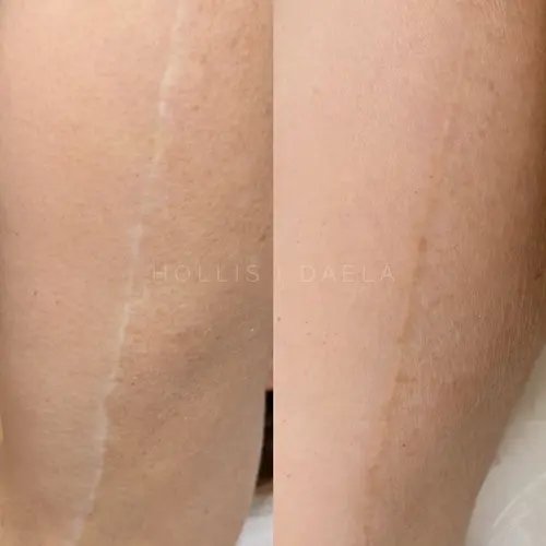 - Flesh-tone pigments are carefully matched to your skin tone, ensuring your scar blends harmoniously with the surrounding area.
