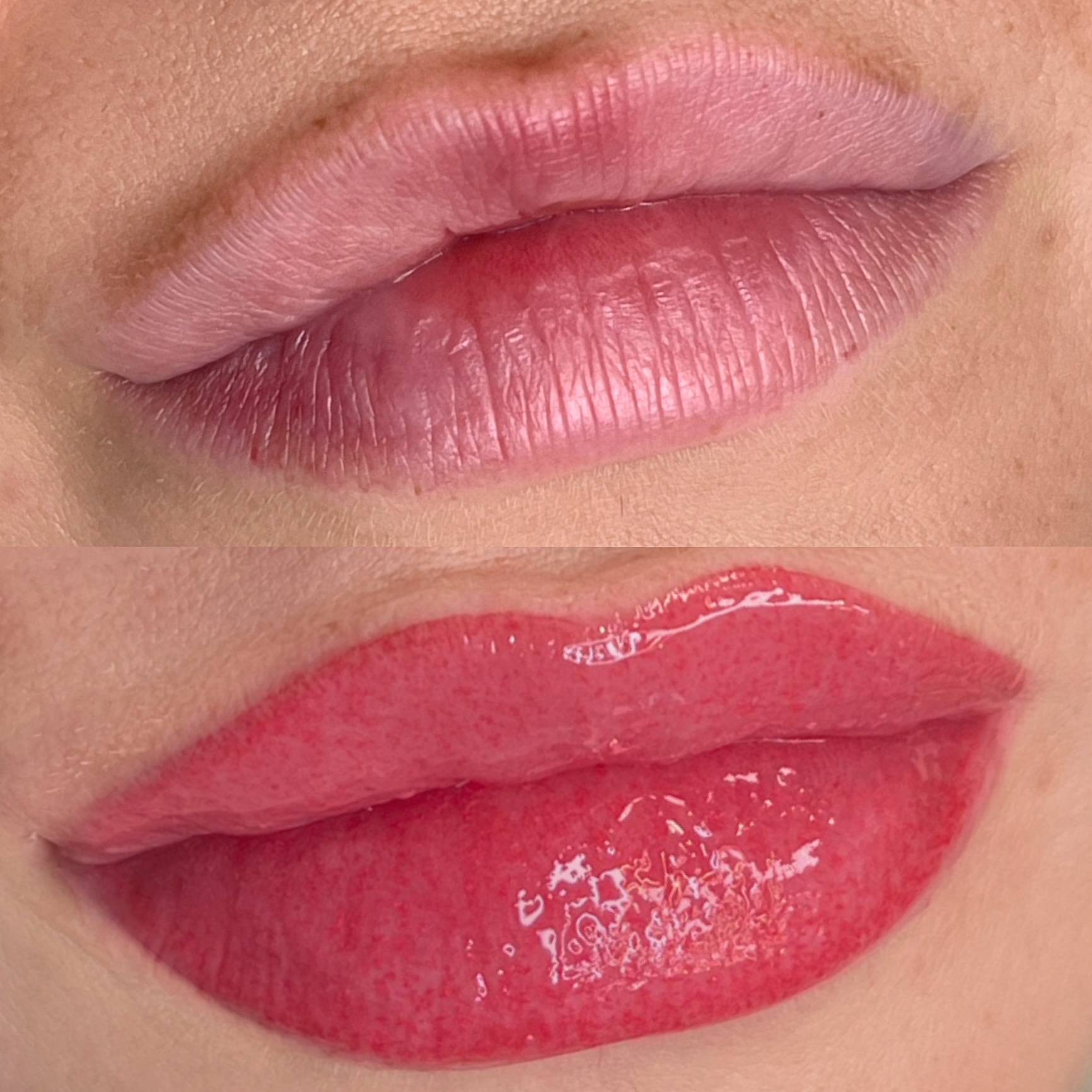 Yes, but it’s recommended to wait until the lips have fully healed before applying any makeup. Many clients find they need less lipstick or gloss after the treatment.Are there any side effects?