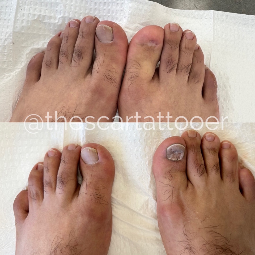 Scar Camouflage Tattoo: Our scar camouflage services employ specialized cosmetic tattooing methods to seamlessly blend scars and stretch marks with your skin tone, significantly diminishing their visibility. We expertly match pigments to your unique skin color, ensuring a natural and discreet outcome. Our range of unique treatments includes addressing fingernails, toenails, belly buttons, and tummy tuck scars.