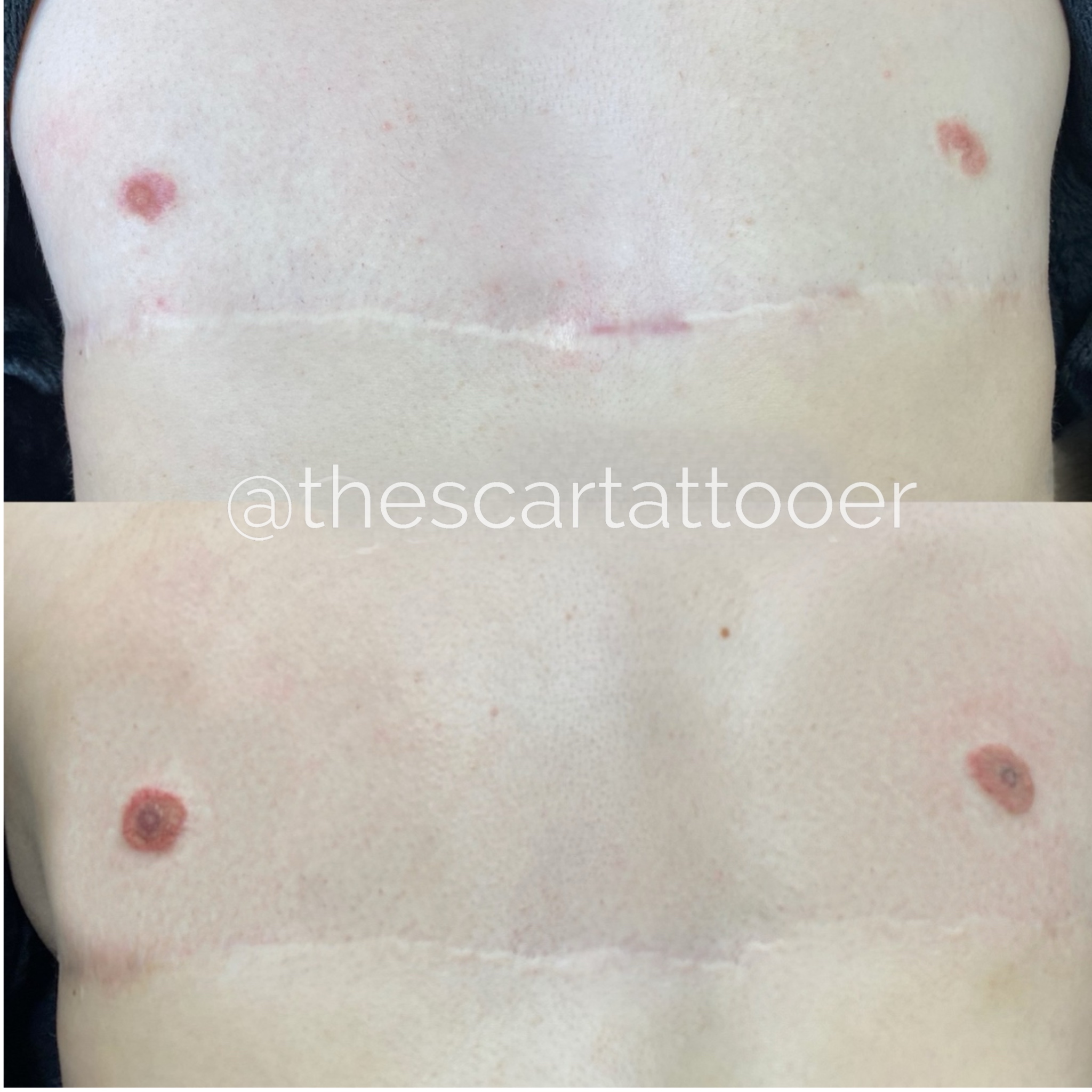 Will the tattoo match my skin tone exactly? The goal is to blend the scar with your skin as closely as possible. Expert artists customize pigment to match your natural skin tone, but final results may vary slightly.